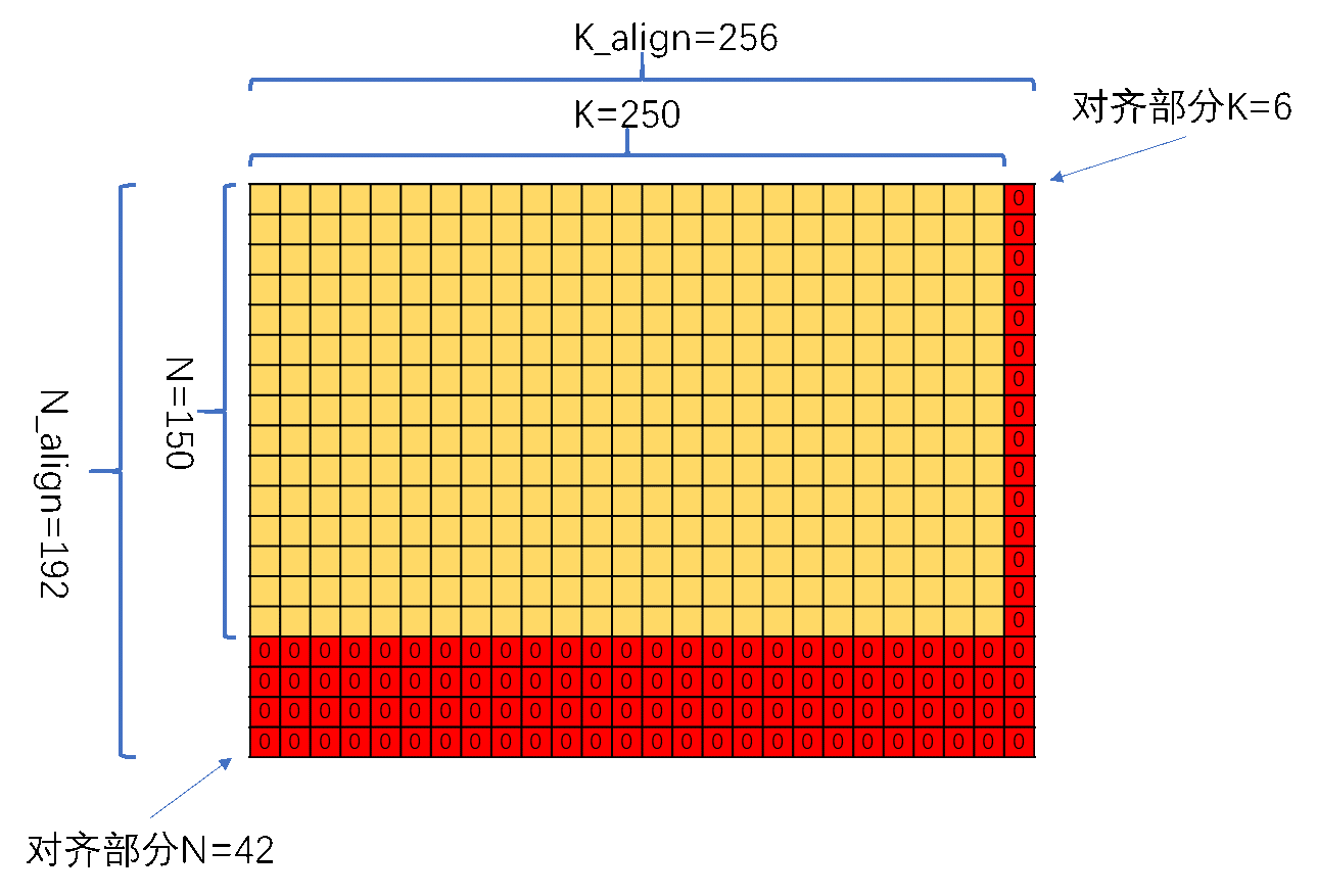 这里的实现方式上相对简单,对齐的关键依旧是K的对齐,N的对齐只要在后面连续补零即可。
