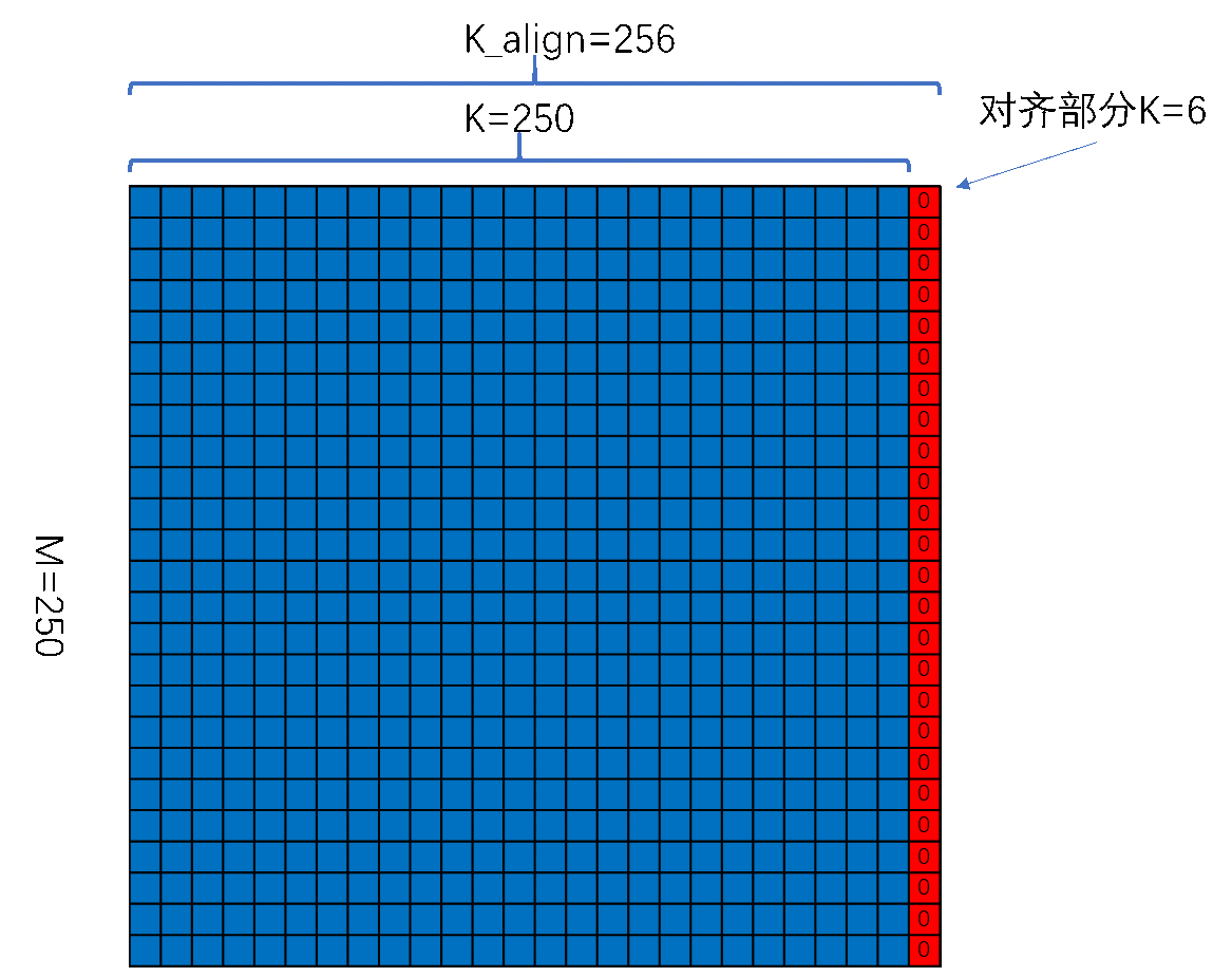 假设输入规模M,K,N 分别为250, 250,150。对齐的目标位置: