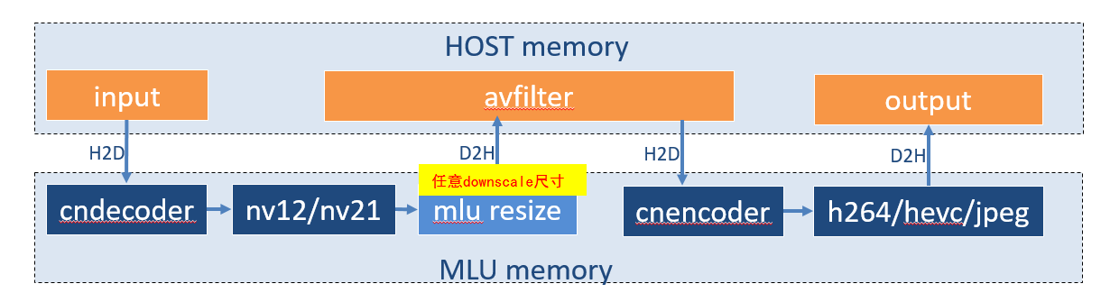 使用硬件解码器与编码器,在解码器与编码器之间,直接连接一个scale resize 算子,算子作为独立的filter模块,算子直接输出到目标尺寸,然后直接做编码操作。